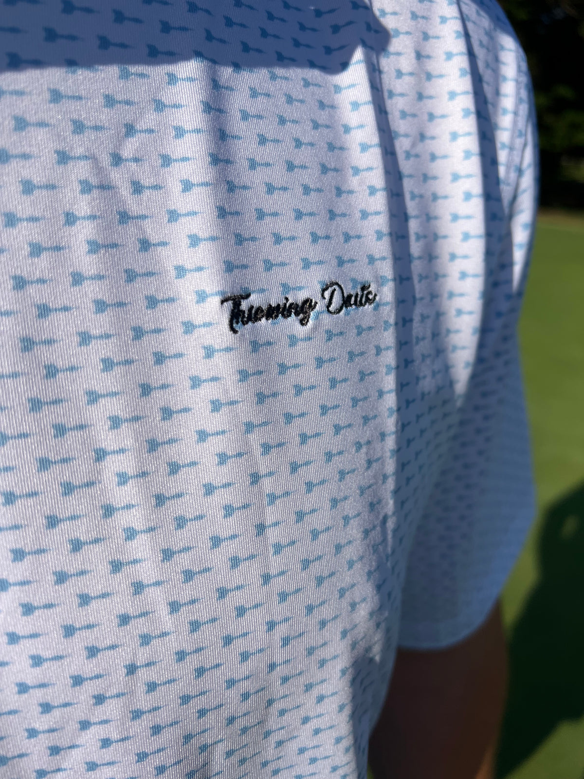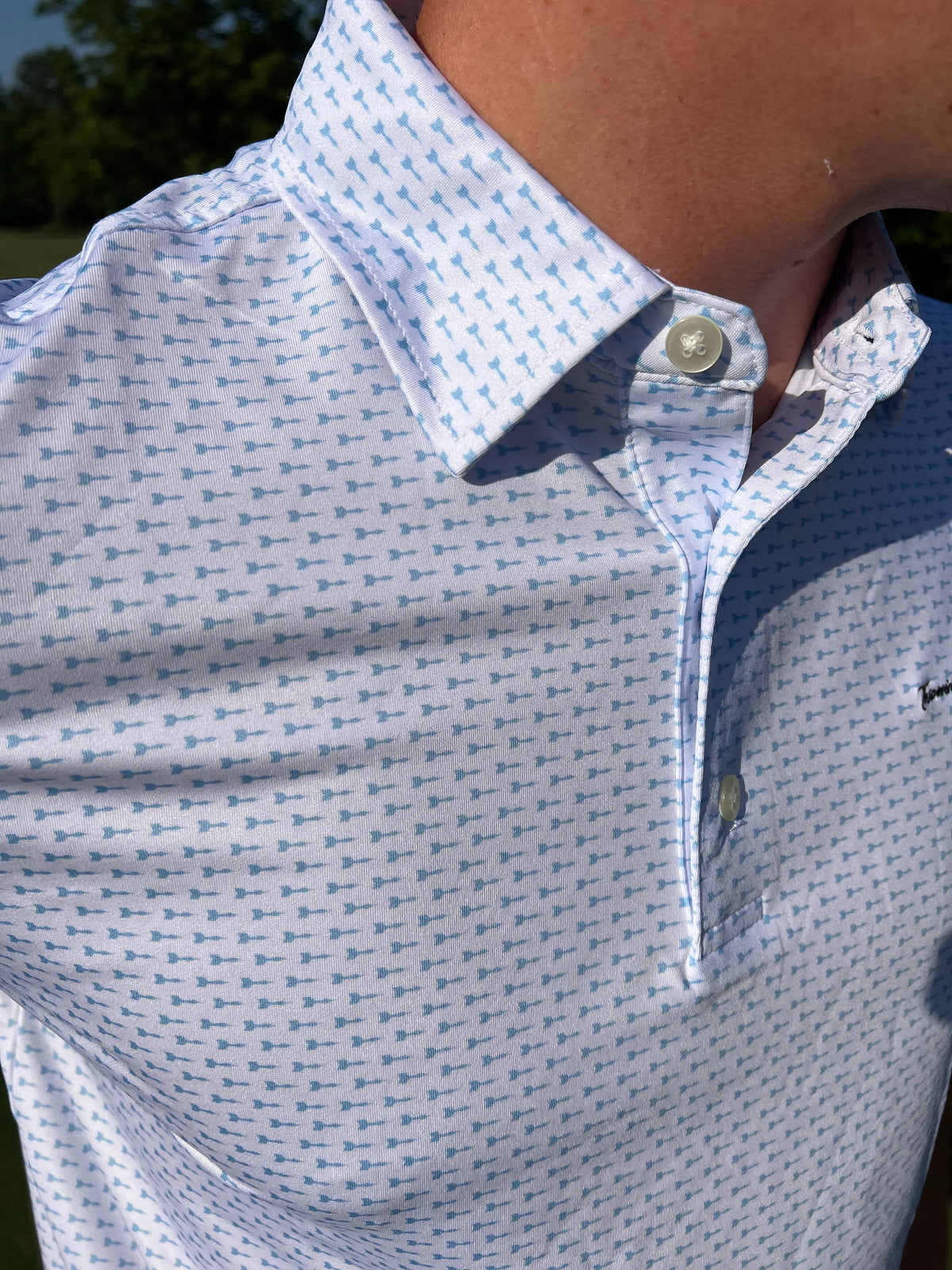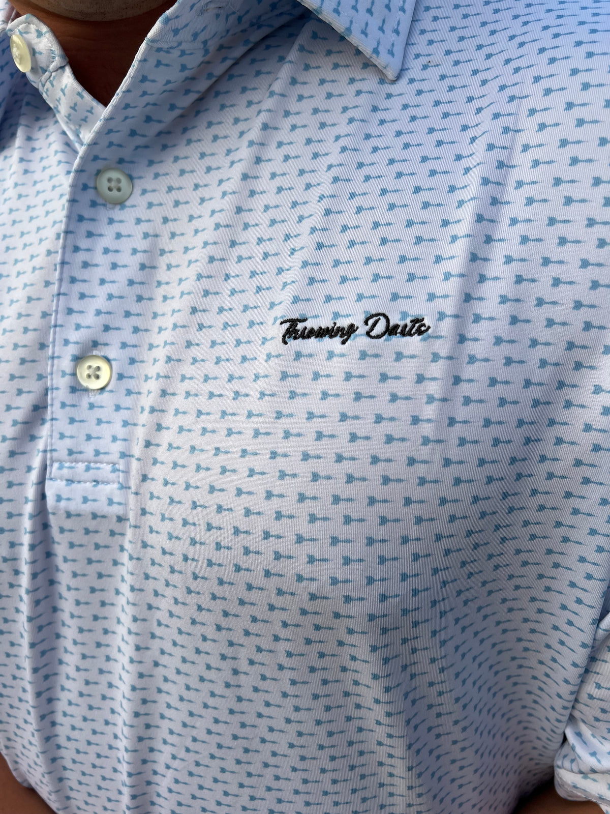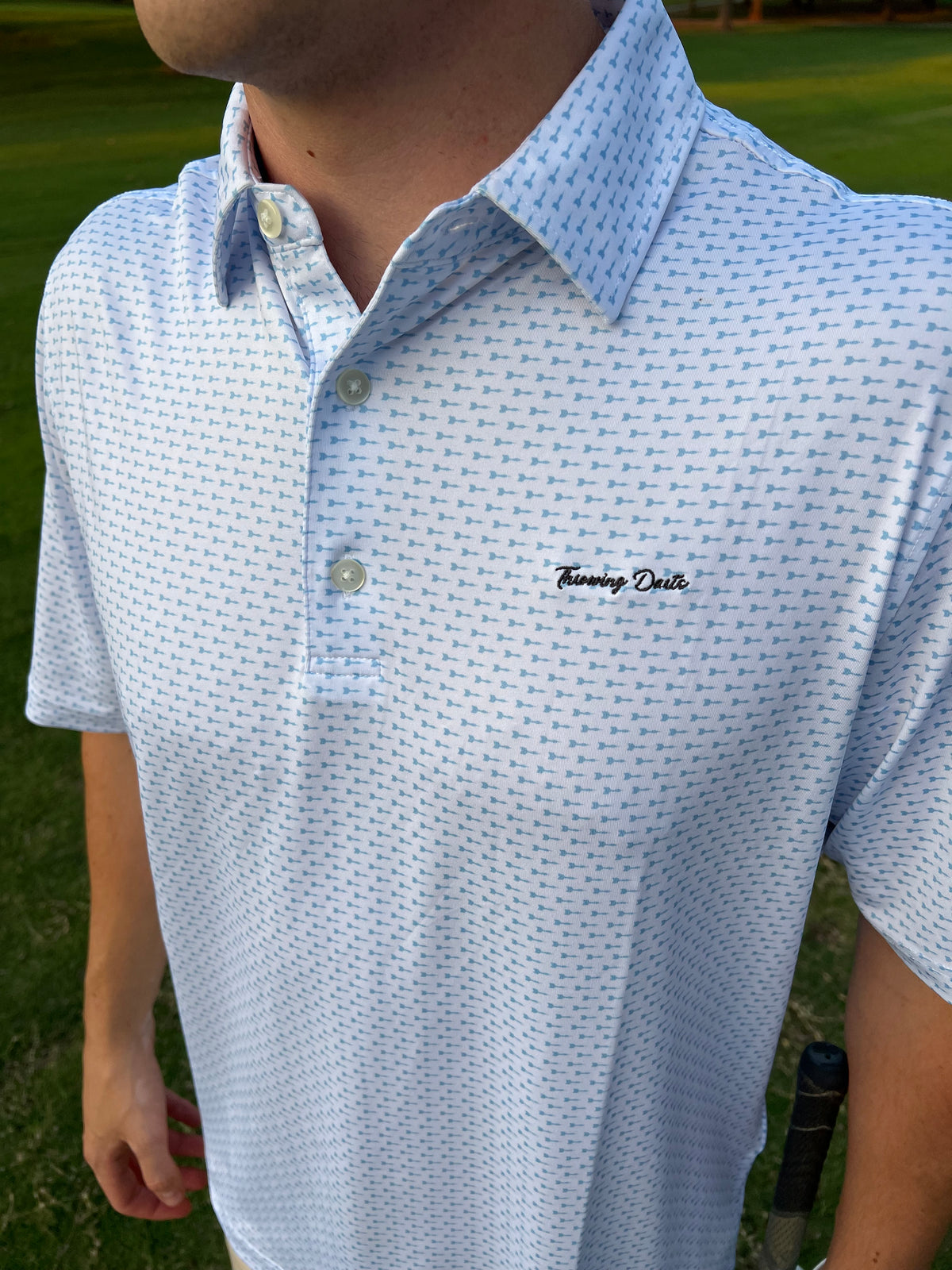Throwing Darts scripted on the front. The pattern of blue 'darts' will be found all over this polo. If you have good short game, this one is for you!
